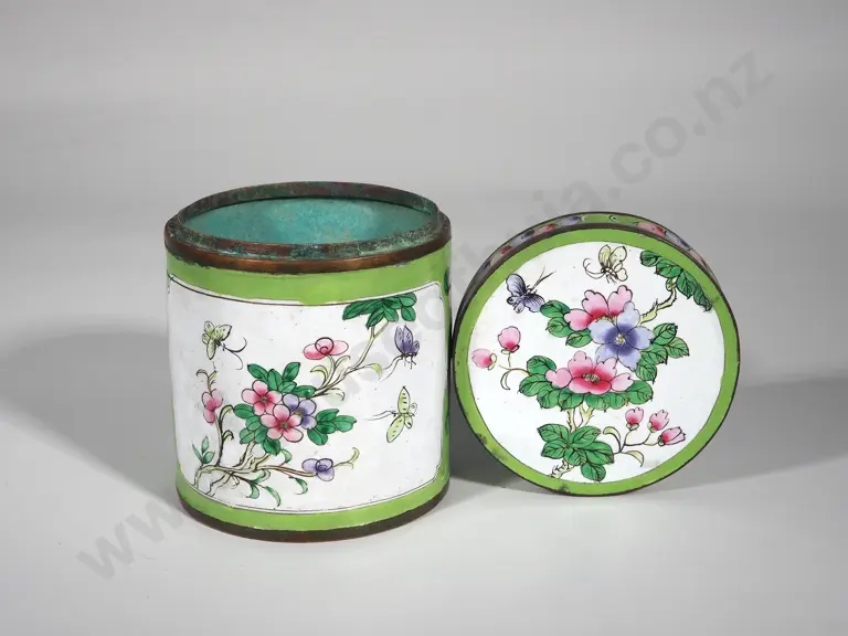 Antique Chinese Hand-Painted Enamel Lidded Cannister Estimate: $40 - $75