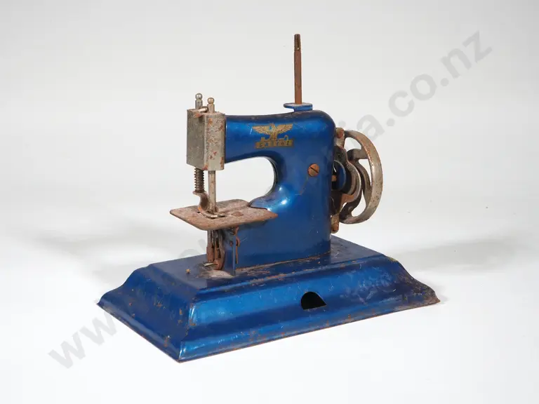 Vintage Royal Blue Childs Hand-Crank West German Sewing Machine A/F Estimate: $40 - $80
