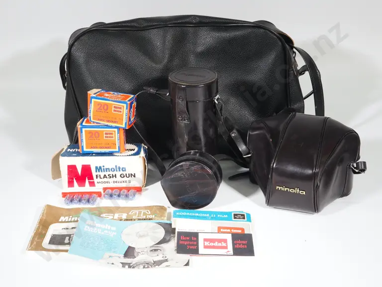 Bag Containing Vintage Minolta Camera and Lenses Estimate: $60 - $80