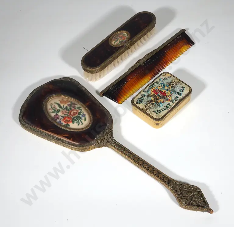 Faux Tortoiseshell Dressing Table Set & a Toilet Pin Box Estimate: $40 - $60