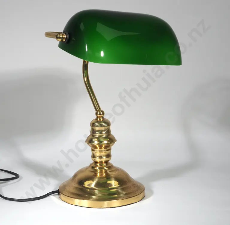 Brass & Green Glass Bankers Lamp Estimate: $50 - $100