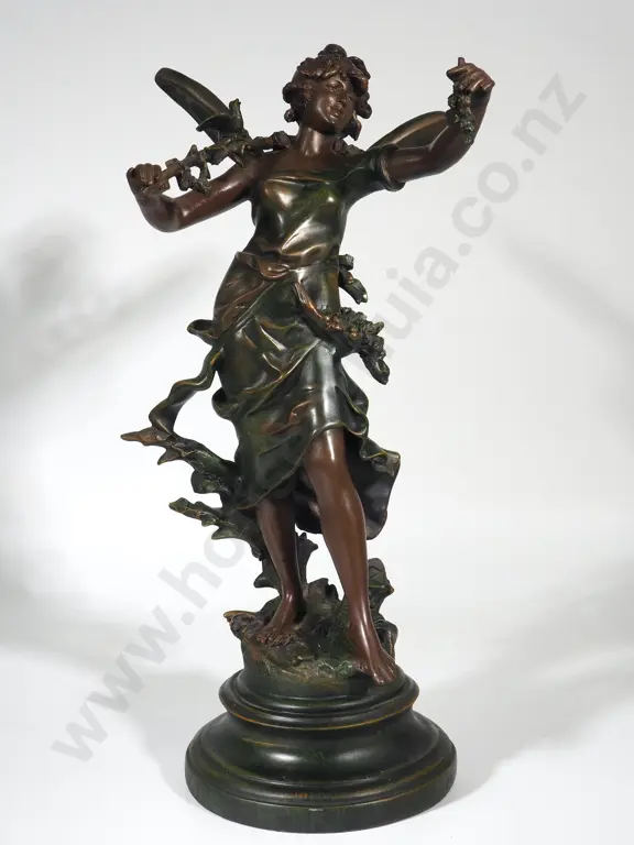 Bronzed Spelter Figure "Spring" Signed Louis Moreau. Estimate: $100 - $150