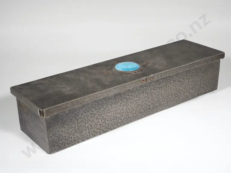 Arts & Craft Style Beaten Metal Box w Blue Enamel Centrepiece
