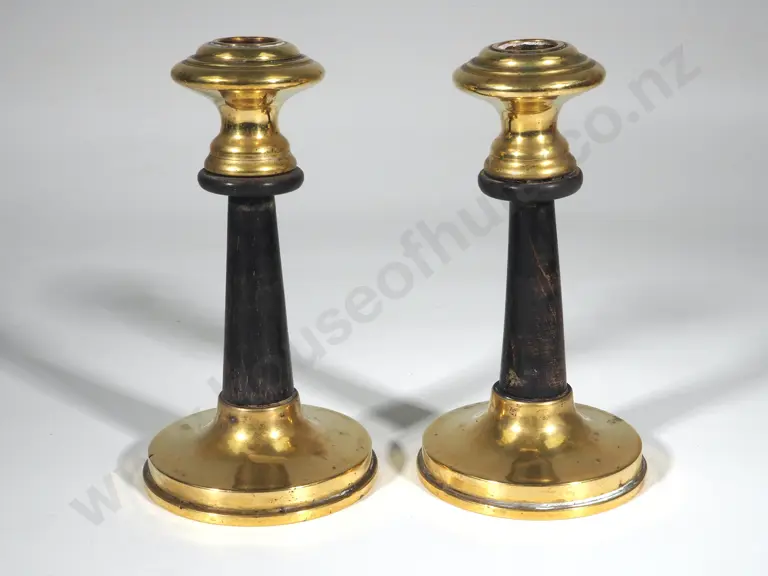 Pair of Wood and Brass Candlesticks Estimate: $60 - $80