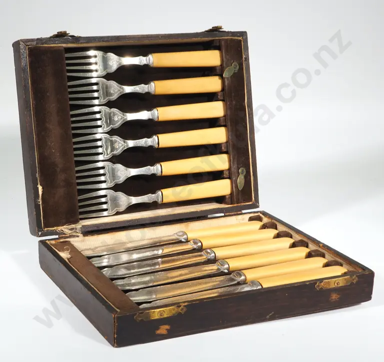 Vintage Cased Set of Six Bone Handled Fish Knives & Forks Estimate: $20 - $40