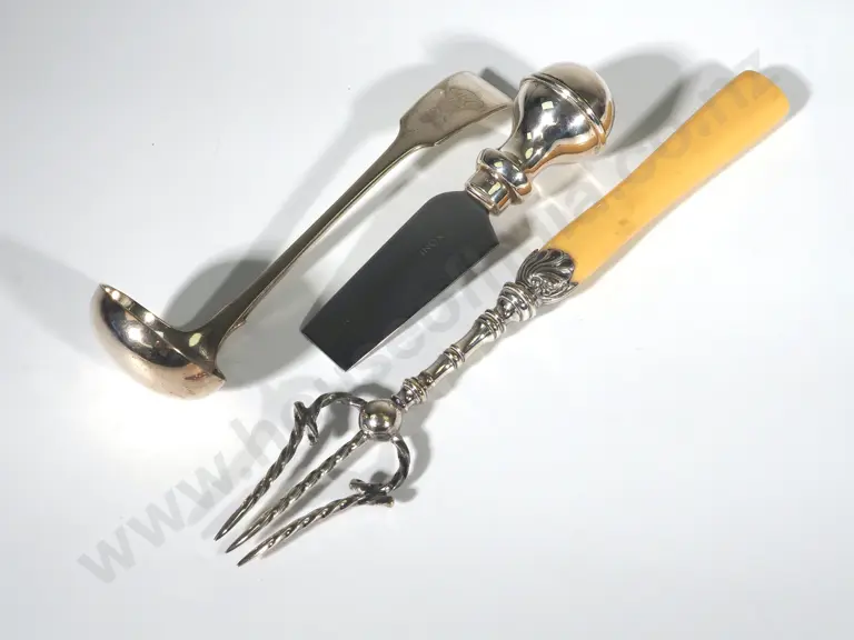 Victorian Plated Bread Fork, Plated Ladle and a Cheese Knife Estimate: $20 - $40