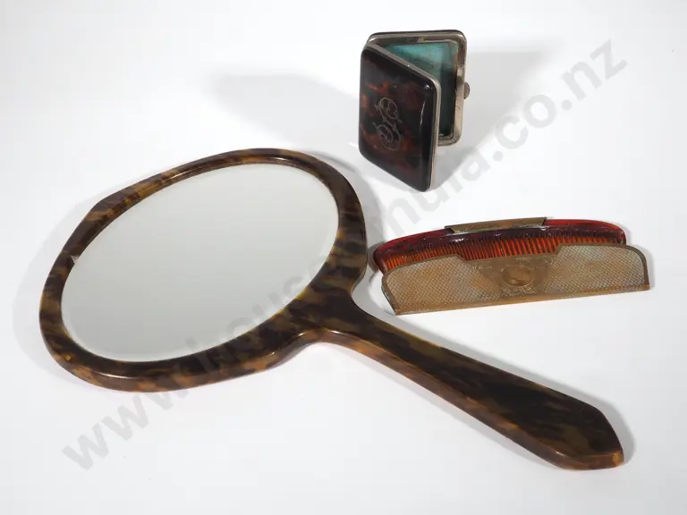 Faux Tortoiseshell Hand Mirror, Initialled Compact and Comb Estimate: $20 - $40