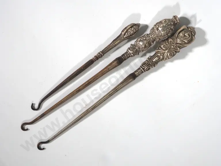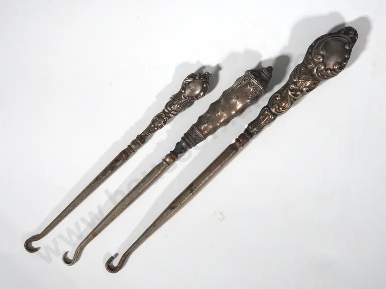 Three Sterling Silver Handled Boot Hooks - Some Damage Estimate: $50 - $80