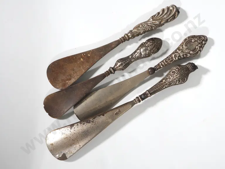 Four Sterling Silver Handled Shoe Horns - Some Damage Estimate: $50 - $75