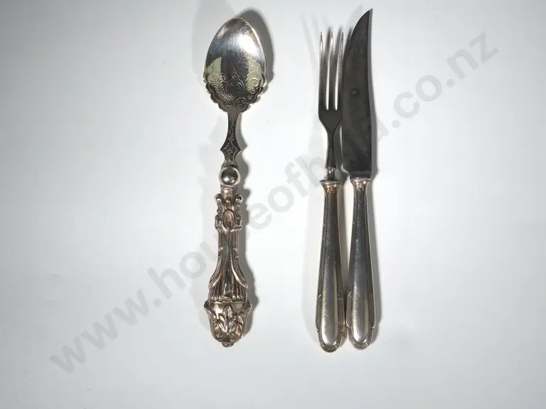 Sterling Silver Christening Spoon, French Silver Fruit Knife and Fork Estimate: $60 - $80