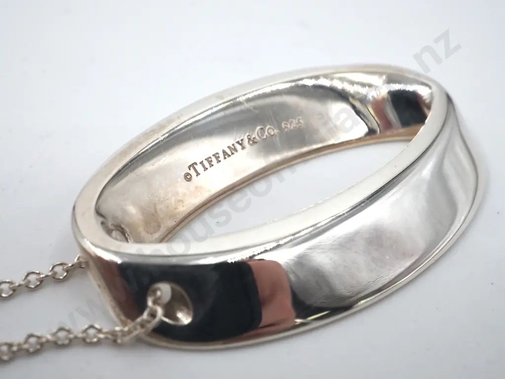 Tiffany & Co Sterling Silver Oval Pendant on Tiffany Chain