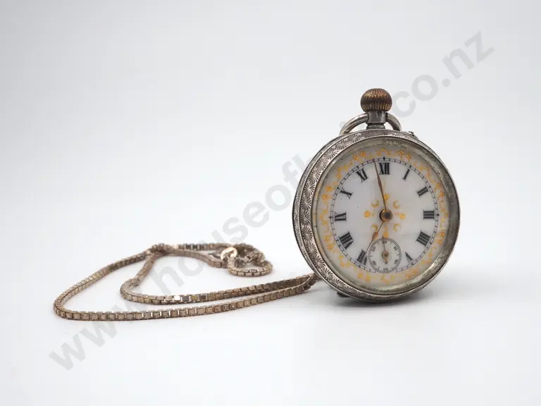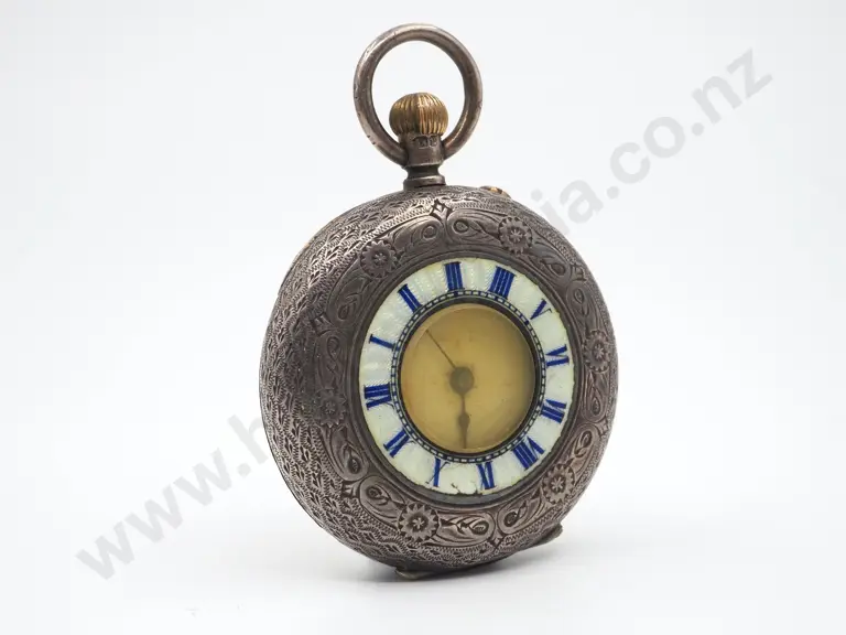 Sterling Silver Engrave Pocket Watch w Cloisonné/Enamel Dial & Crest Estimate: $120 - $180