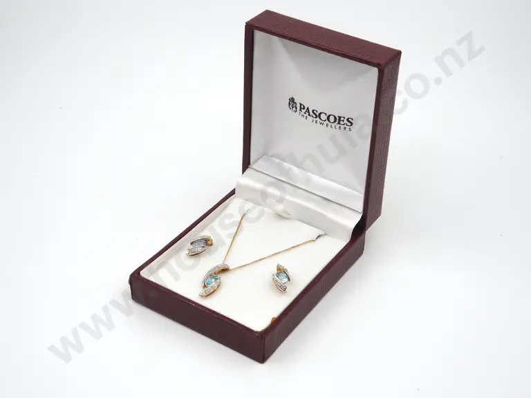Cased 9ct Gold Earring & Necklace w Blue Topaz & Diamonds Estimate: $250 - $350
