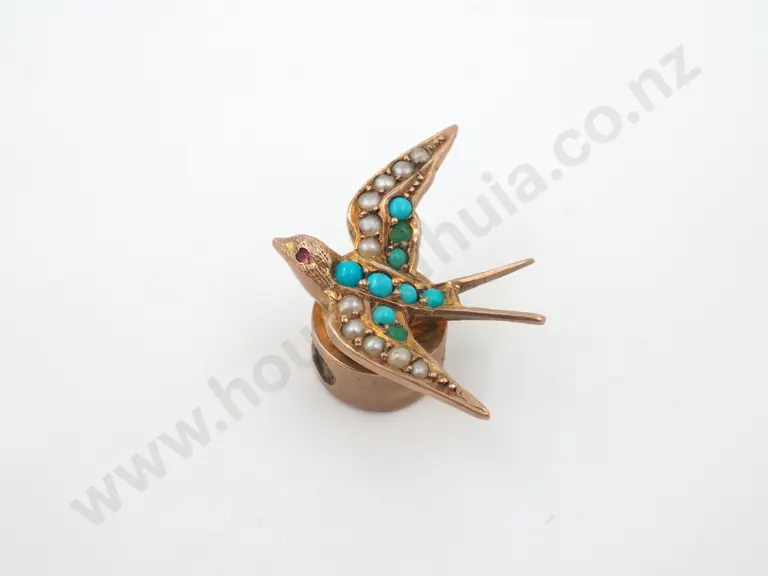 9ct Gold Seed Pearl & Turquoise Bird Pin Estimate: $180 - $240