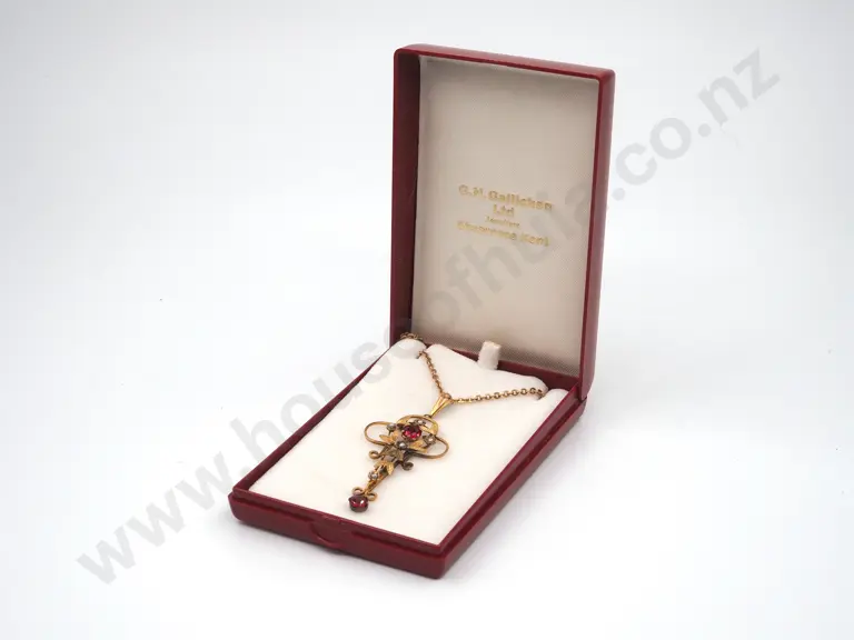 Edwardian 9ct Gold Seed Pearl & Synthetic Ruby Pendant Estimate: $450 - $650