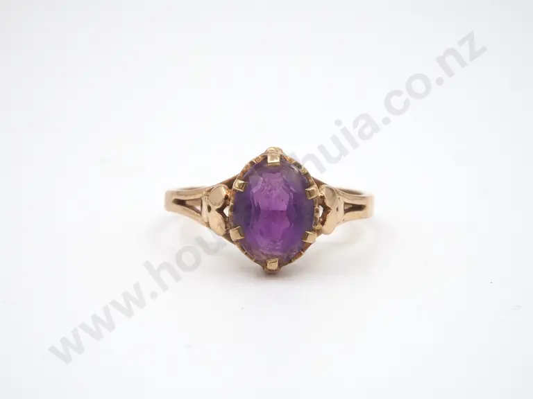 9ct Gold Amethyst Ring w Shamrock Shoulders Estimate: $200 - $300