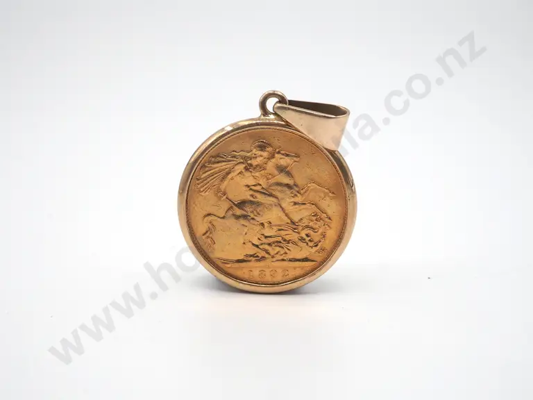 1892 Sydney Full Sovereign Pendant in 9ct Gold Surround Estimate: $1,200 - $1,400