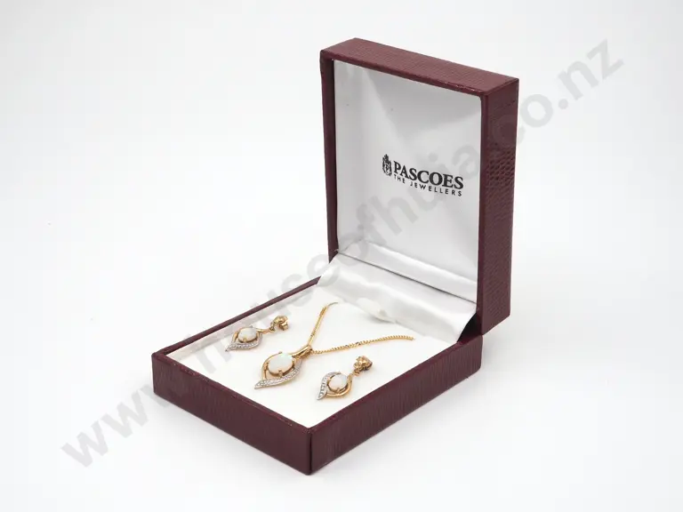 Cased 9ct Gold Opal Earring & Pendant on Curb Link Necklace Set Estimate: $300 - $400