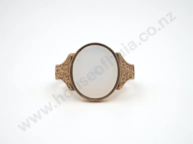 Antique 9ct Gold Chased Signet Ring w White Stone Estimate: $350 - $450