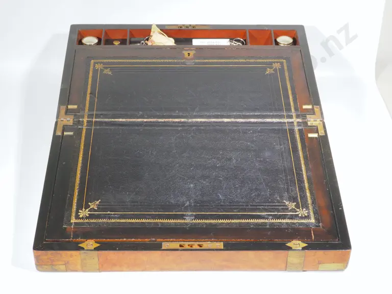 Impressive Brass Bound Victorian Walnut Writing Slope In Excellent Condition - Interior Complete & w Secret Drawer Estimate: $300 - $500