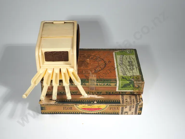 Vintage Rolinx Cigarette Dispenser Circa 1950 & Two Vintage Cigar Boxes Estimate: $60 - $80
