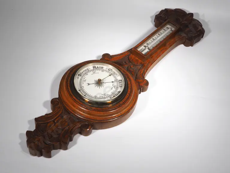 Antique Ornately Carved Oak Barometer Barometer Estimate: $100 - $200