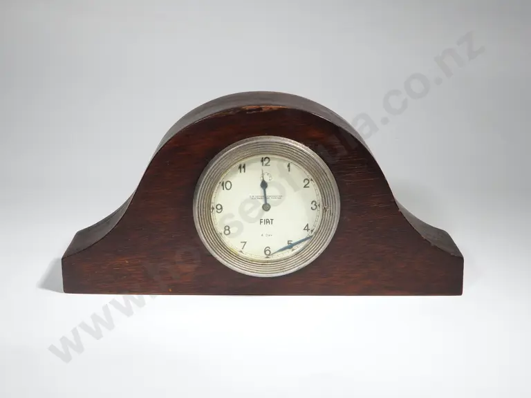 Art Deco Napoleon Hat Style Wooden Mantel Clock with FIAT (Car Company) Clock A/F Estimate: $100 - $200