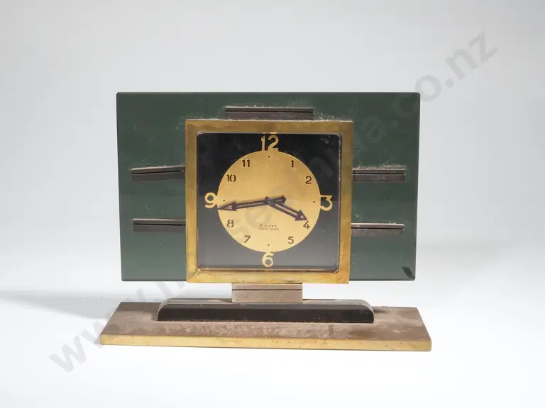Mid Century Swiss Glass & Brass 8 Day Desk Clock Estimate: $100 - $200