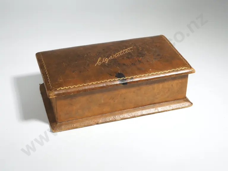 Leather Cigarette Box with Gilt Lettering Estimate: $50 - $80