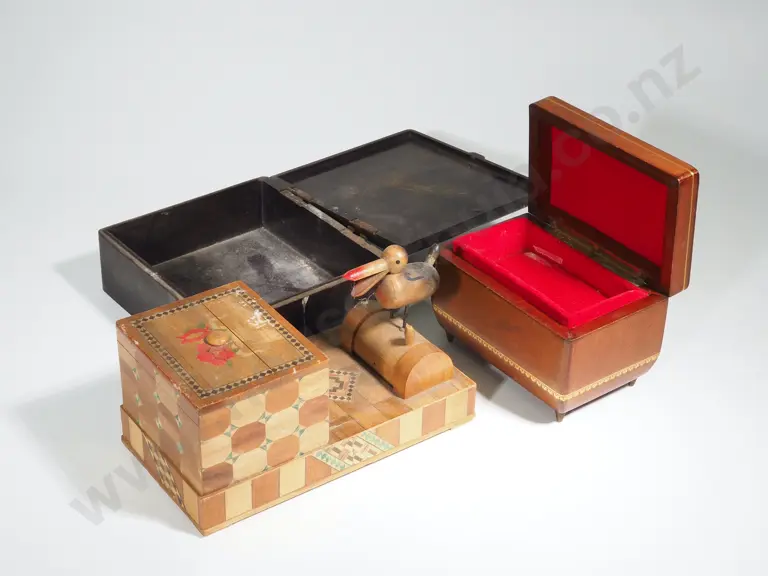 Vintage Inlaid Wooden Music Box Cigarette Dispenser Estimate: $60 - $80