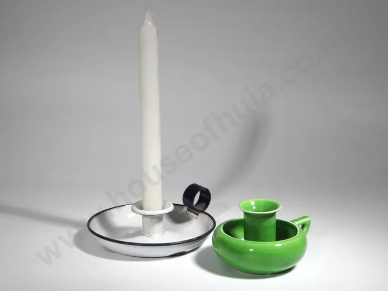 Green China" Wee Willy Winkie Candleholder & Another Enamel Estimate: $60 - $80