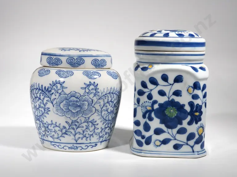 Two Lidded Blue & White Lidded Canisters Estimate: $80 - $120