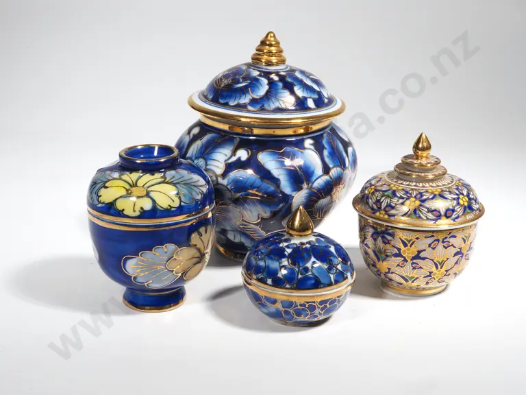 Four Blue & White Gilded Lidded Jars Estimate: $80 - $120