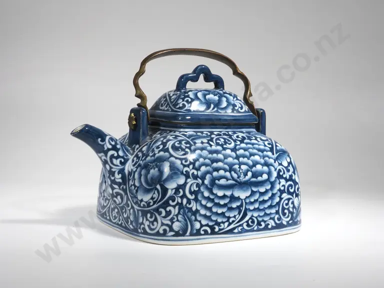 Blue & White Handpainted Teapot With Brass Handle Estimate: $40 - $80