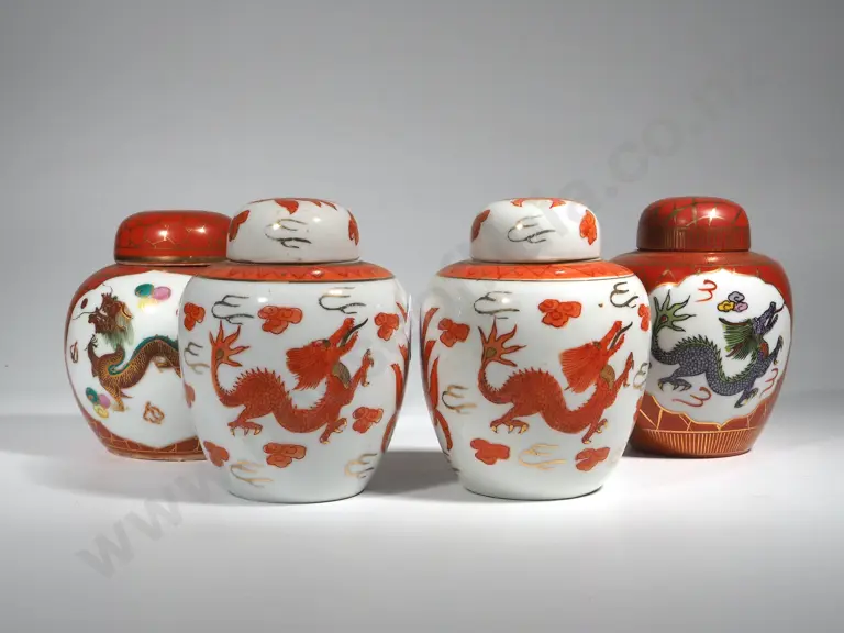 Four Oriental Lidded Ginger Jars W Orange & White Dragon Glaze Estimate: $60 - $80