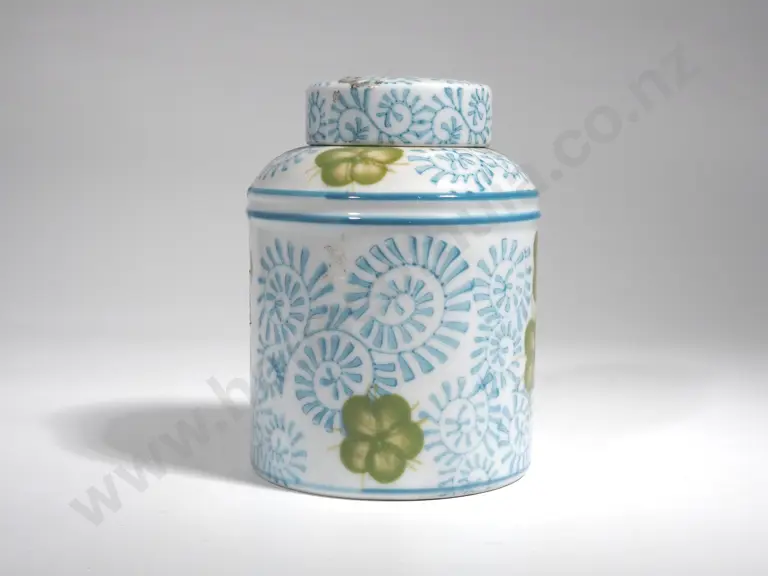 Oriental Lidded Jar w Green Floral Decoration Estimate: $40 - $60