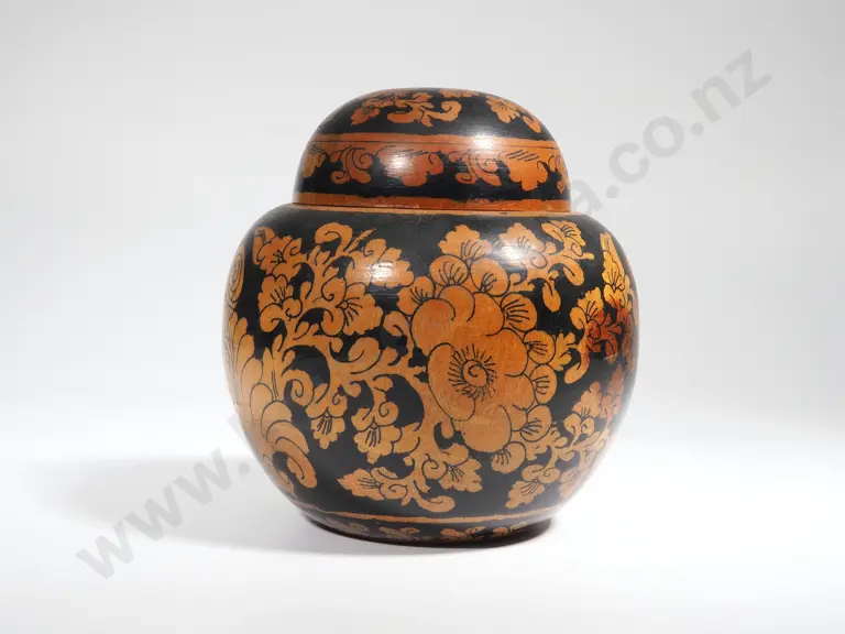 Wooden Brown & Black Ginger Jar W Apple Blossom Estimate: $40 - $60