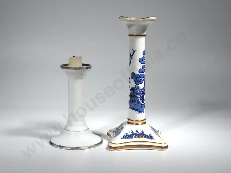 Coalport Willow Pattern Blue & White Candlestick & Other China Column Candle Stick Estimate: $50 - $80