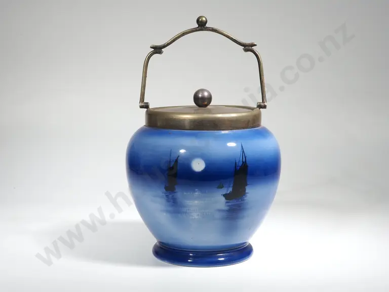 Large Shelley Blue Biscuit Barrel Decorated w Yachts Estimate: $60 - $80