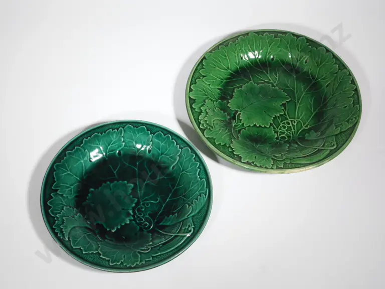 Two Antique Majolica Ware Green Leaf Plates - One A/F Estimate: $60 - $80