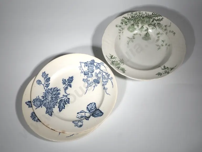Two Blue & White Plates and Large Green Soup Bowl Estimate: $40 - $60