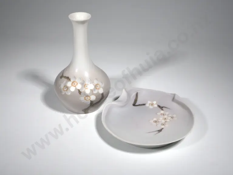 B & G Specimen Vase & Pin Dish In the Apple Blossom Pattern