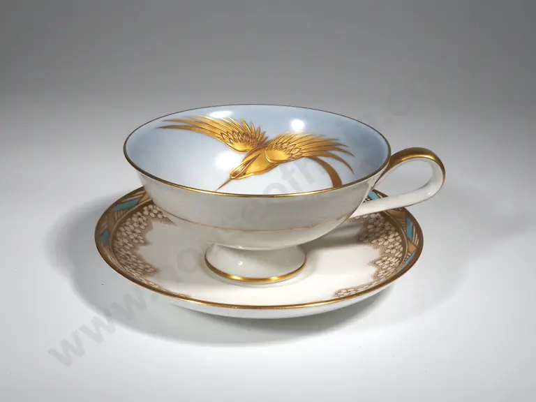 Bavarian Cup With Hand painted Gilt Bird In Flight With Paragon Saucer