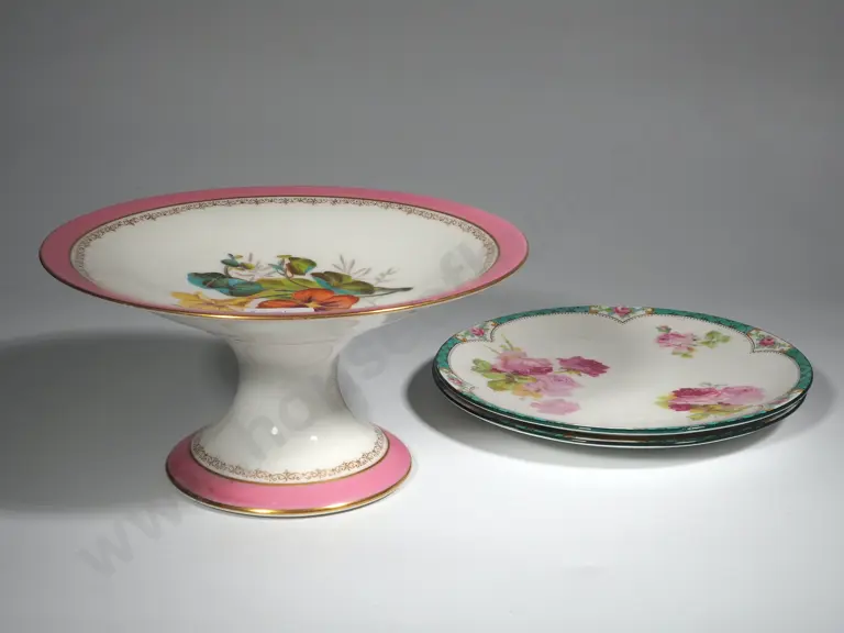 Two Royal Doulton Rose Plates & English China Comporte Estimate: $40 - $60