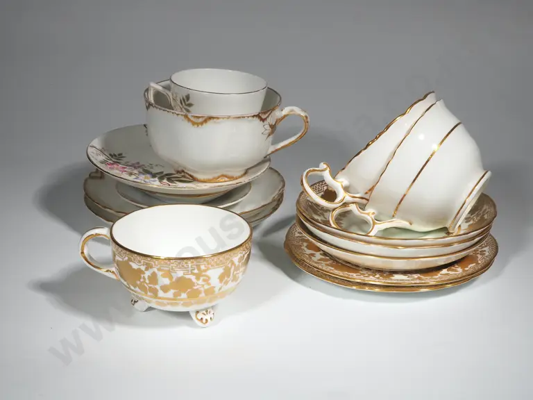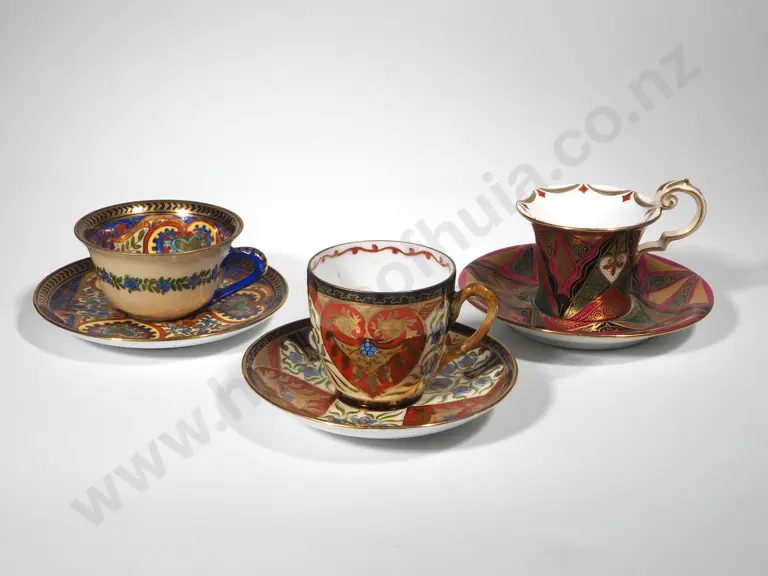 Three Miniature Cabinet Cup & Saucers - Czech - Elaborate Floriate & Gilded Decoration Estimate: $70 - $90