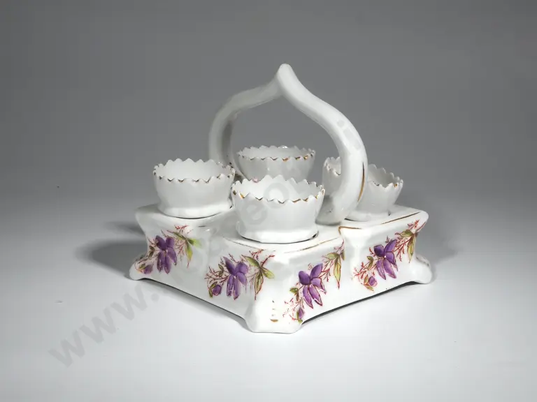 Egg Cup Cruet w White Ground & Lilac Flowers