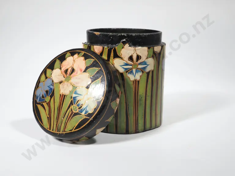 Lacquered Cylindrical Box w Irises