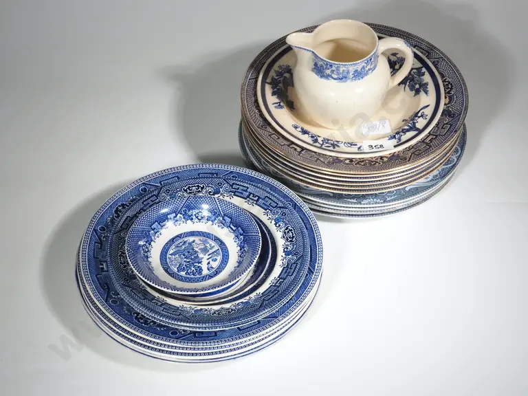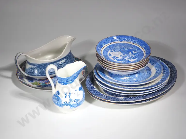 Collection of Blue & White China incl Stoke on Trent Willow Pattern Plate Estimate: $40 - $60