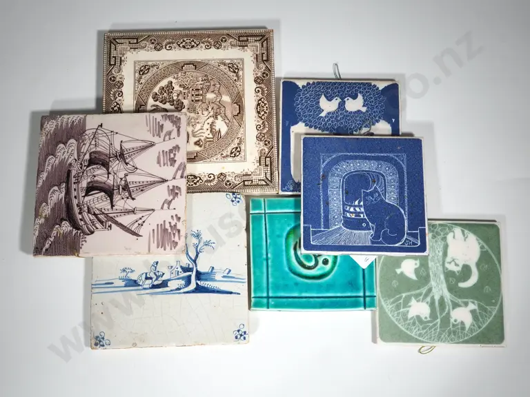 Six Tiles incl Brown Willow Pattern Estimate: $40 - $80