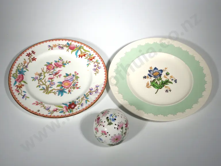 Two Floral Plates- One Royal Doulton One Wedgewood & A Floral Pomander Estimate: $40 - $60